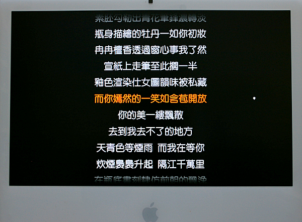 千千靜聽(打芊芊靜聽也查得到),是對岸人寫的軟體,教學文章一堆了,但主要想把播放軟體從 itune 轉為千千靜聽的主要功能,就是自動查詢歌詞囉,它的邏輯就是根據你的歌曲名稱、主唱、專輯,去歌詞的server尋找,中文歌曲80%以上都有,不過,像 新的海角七號就還沒上線囉。有興趣的可以下載來玩玩。