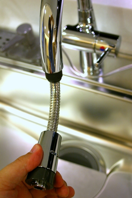 水槽方面,選擇不會濺水,水龍頭可拉長,方便清洗的日系產品,水槽前方的置物空間,不管是刀具、肥皂、沙拉脫等,下方都具有排水功能,可保持水槽的清潔,而熱水方面,由於有裝太陽能熱水器,因此冬天時使用,也保有溫暖。