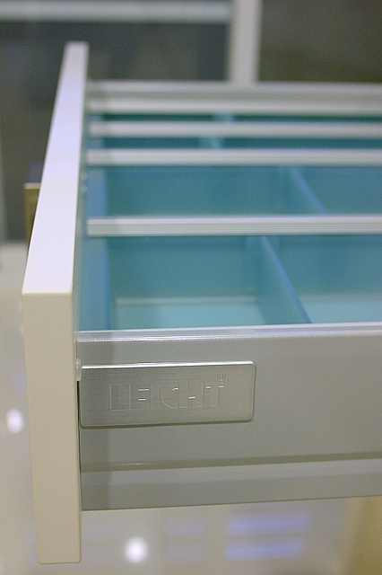 LEICHT的五金是委託德國著名五金 BLUM代為生產,再打入LEICHT成為雙LOGO的五金。
