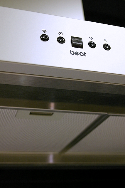 BEST的收油煙機,具有燈光、四段式的抽油強度,還有定時功能,就是炒完菜,可設置個三、五MIN續抽廚房的餘煙後自動關機。