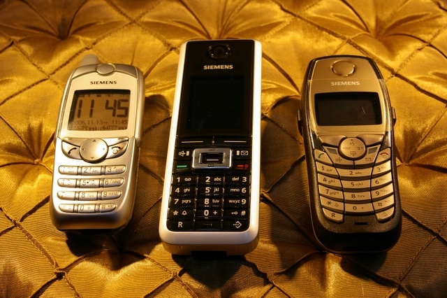 將6688(哈!這年頭還有用單色手機喔!)、SL550和SL100放在一起。看得出有兩支是室內的嗎?呵呵,朋友來找室內電話,常看不出來。
