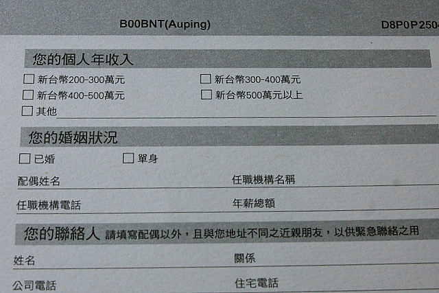 申請書的一項,「你的個人收入」,咦,最低選項是 200-300 萬元,低於 200 萬元的選項,害羞的躲到哪裡去了?